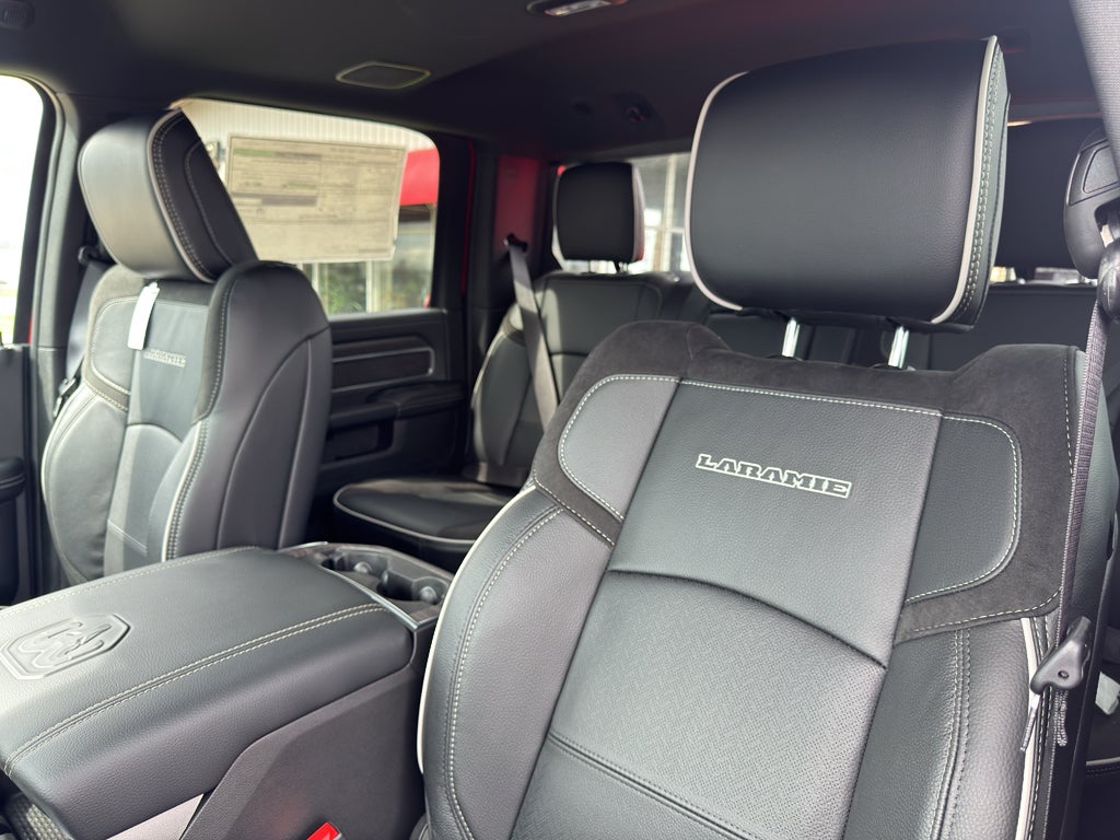 Quick Order Package 24H Laramie. Laramie Level 1 Equipment Group: Forward and Reverse Utility Lights; Rain Sensitive Windshield Wipers; Power Adjustable Pedals with Memory; Power Heated Fold Telescopic Mirrors with Memory; Exterior Mirrors with Supplemental Signals; Exterior Mirrors Courtesy Lamps; Auto Power-Folding Mirrors; Remote Tailgate Release; Exterior Mirrors with Heating Element; Auto Dim Exterior Mirror; Anti-Spin Differential Rear Axle; Auto High Beam Headlamp Control; Chrome Exterior Mirrors; Exterior Mirrors with Memory; Mirror Running Lights; Foam Bottle Insert (door Trim Panel); Power Adjust Mirrors; 2nd Row in Floor Storage Bins; Power Telescoping Mirrors; Auto Dim Exterior Passenger Mirror; Auto Adjust in Reverse Exterior Mirrors; Power-Adjustable Convex Aux Mirrors. Towing Technology Group: Center Stop Lamp with Cargo View Camera; MOPAR Trailer Camera Wiring with No Camera; Surround View Camera System; Trailer Tire Pressure Monitoring System; Trailer Reverse Guidance. Chrome Bumper Package: Bright Rear Bumper; Bright Front Bumper. 20" X 8.0" Polished Aluminum Wheels. 5th Wheel/gooseneck Towing Prep Group. Leather Trimmed Bucket Seats. MOPAR Trailer Camera Wiring with No Camera. Center Stop Lamp with Cargo View Camera. **Equipment listed is based on original vehicle build and subject to change. Please confirm the accuracy of the included equipment by calling the dealer prior to purchase.**