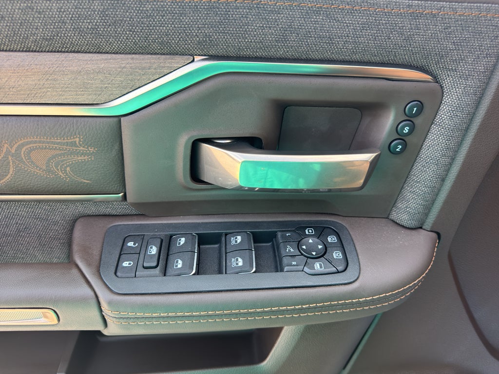 Quick Order Package 24K Longhorn: Luxury Front and Rear Floor Mats; Warm Chrome Key Fob; Longhorn Instrument Cluster Theme 3; Premium Door Trim Panel; Premium Filigree Leather Seats; I/P Aluminum Litho Bezels with Real Wood #1; Longhorn Badge. Longhorn Level 1 Equipment Group: Active Lane Management System; MOPAR Spray in Bedliner; Center Stop Lamp with Cargo View Camera; Surround View Camera System; Drowsy Driver Detection; LED Bed Lighting; Power Deployable Running Boards; Traffic Sign Recognition; Trailer Tire Pressure Monitoring System; Trailer Reverse Guidance; Digital Rearview Mirror; Adaptive Steering System. Chrome Bumper Package: Bright Rear Bumper; Bright Front Bumper. Auto Level Rear Air Suspension. Diamond Black Crystal PC. Instrument Panel Mounted Auxiliary Switches. 5th Wheel/gooseneck Towing Prep Group. Clearance Lamps. Transfer Case Skid Plate Shield. **Equipment listed is based on original vehicle build and subject to change. Please confirm the accuracy of the included equipment by calling the dealer prior to purchase.**