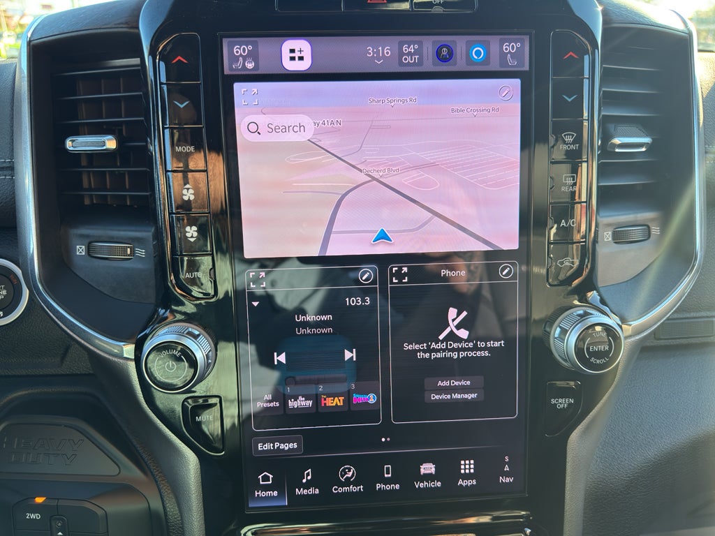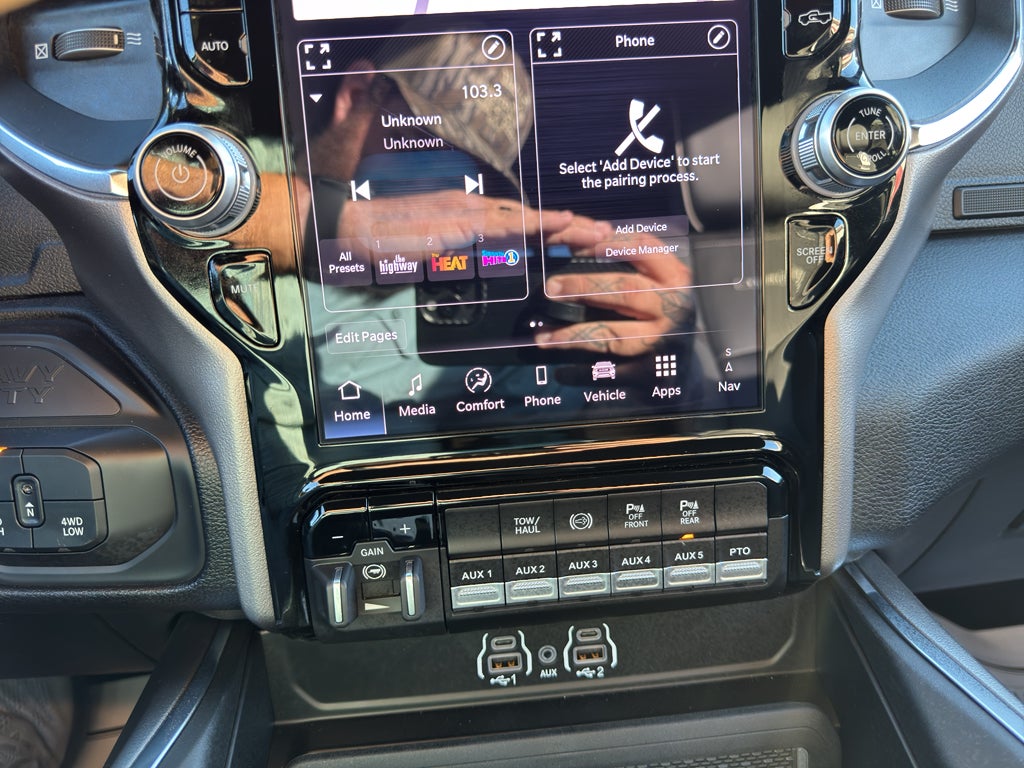 Quick Order Package 25Z Big Horn: Black-Out Tape; Manual Folding Exterior Mirrors; Tinted Acoustic Windshield Glass; Exterior Mirrors with Heating Element; Chrome Grille Surround; Trailer Brake Control; Painted I/P Bezels with Hydrographics; Mirror Running Lights; Black Exterior Mirrors; Premium Vinyl Door Trim with Map Pocket; RAM Door Badges; Power-Adjustable Convex Aux Mirrors; Mirror Power Heat Fold Telescope Black; Exterior Mirrors with Supplemental Signals; Body Insulation; Exterior Mirrors Courtesy Lamps; Passenger Sun Visor with Illuminated Mirror; Matte Black Mesh Grille with Chrome; Center Hub; Satin Chrome Key Fob; Acoustic Front Door Glass; Manuarl Telescoping Mirrors; Power Adjust Mirrors; Traveler/mini Trip Computer; Bright Front Bumper. Laramie Trim Group: Google Android Auto; SiriusXM Radio Service; For Details. Visit DriveUconnect.com; For More Info. Call 800-643-2112; Integrated Voice Command with Bluetooth®; 12.0" Touchscreen Display; Glove Box Lamp; Courtesy Lamps; Temperature and Compass Gauge; Media Hub with 2 Charge Only USBs; Alexa Built-In; Apple CarPlay; Premium Overhead Console; Locking Lower Glove Box; Remote Start System; Disassociated Touchscreen Display; 225/70R19.5G Off Road Tires; Dual Glove Boxes; Body Color Fender Flares; 17 Speaker Harman/kardon Premium Sound; LED Interior Lighting; 115V Auxiliary Power Outlet; LED Dome Lamp with On/off Switch; Universal Garage Door Opener; Chrome Billets/accents Grille; Digital Rearview Mirror; Sun Visors with Illuminated Vanity Mirrors; CHMSL Lamp with Camera; Rear Window Defroster; Rain Sensitive Windshield Wipers; Rear Power Sliding Window; Connectivity - US/Canada; Body Color Door Handles; GPS Navigation; Painted Front Bumper; 4G LTE Wi-Fi Hot Spot; GPS Antenna Input; Overhead LED Lamps; SiriusXM with 360L; Bi-Function LED Projector Headlamps; Global Telematics Box Module; Connected Travel and Traffic Services; Foam Bottle Insert (door Trim Panel); Highline Door Trim Panel; Painted I/P Bezels with Premium Film; Off-Road Info Pages; Trailer Tow Pages; Leather Trimmed Bucket Seats; HD Radio; Uconnect 5 Navigation with 12.0" Display Radio; Steering Wheel Mounted Audio Controls; Air Conditioning ATC with Dual Zone Control; 2-Door Passive Entry. Front Door Locks; Auto High Beam Headlamp Control; Cluster 12" TFT Color Display; LED Daytime Running Headlamps; 19.5" X 6.0" Forged Aluminum Polished Wheels; Front Door Accent Lighting; Luxury Steering Wheel; Rear Door Accent Lighting; ParkSense Front/rear Park Assist System. Quick Order Package 2XZ Big Horn. 19.5" X 6.0" Forged Aluminum Polished Wheels. 225/70R19.5G Off Road Tires. ParkSense Front/rear Park Assist System. ParkView Rear Back Up Camera. Full Size Spare Tire. Manual DPF Regeneration. Forged Blue Metallic. Body Color Fender Flares. **Equipment listed is based on original vehicle build and subject to change. Please confirm the accuracy of the included equipment by calling the dealer prior to purchase.**