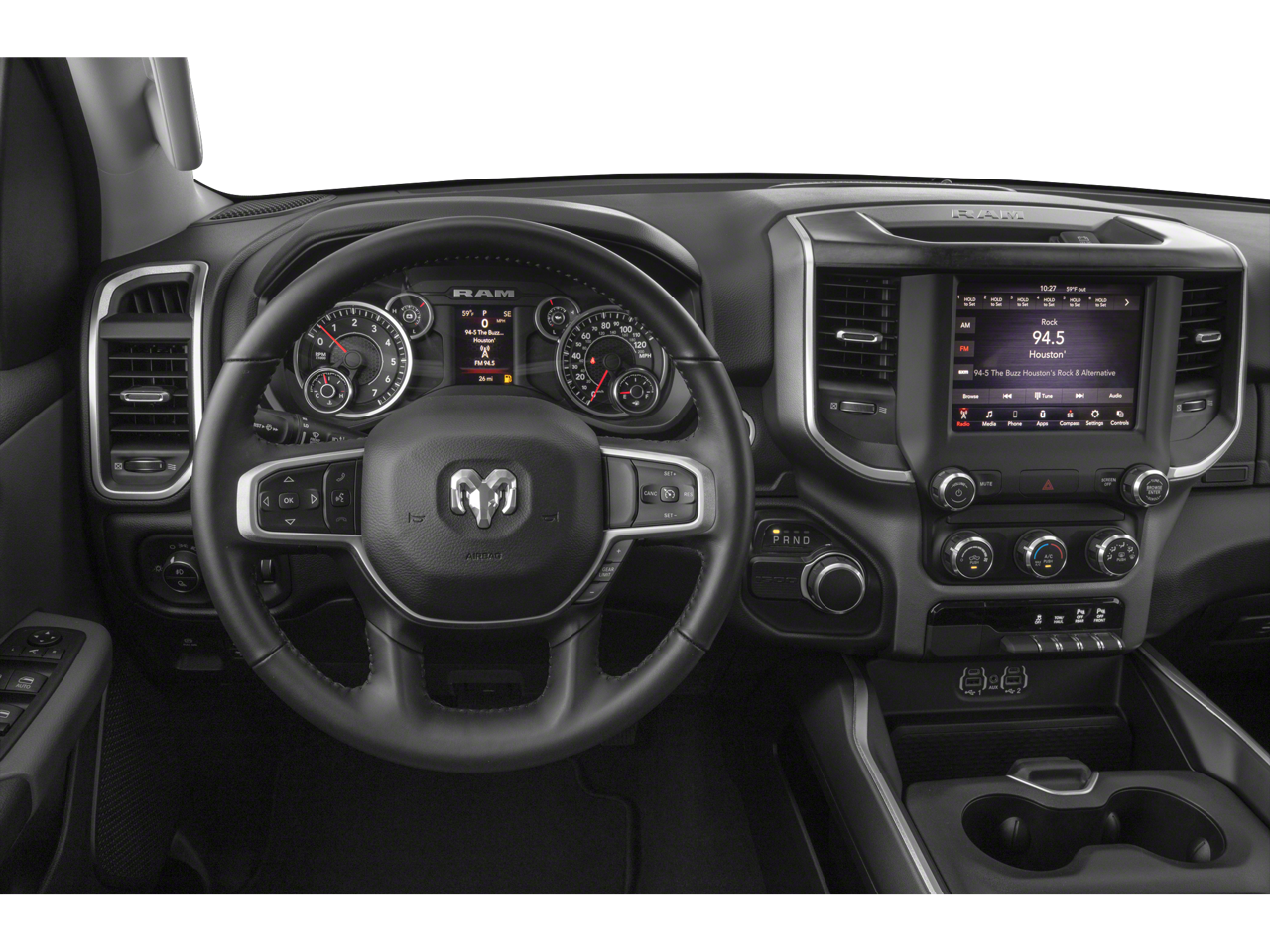 Quick Order Package 27Z Big Horn: Big Horn Badge. Big Horn Level 2 Equipment Group: SiriusXM Radio Service; Rear Window Defroster; ParkSense Front/rear Park Assist with Stop; Rear View Auto Dim Mirror; Power Adjustable Pedals; For More Info. Call 800-643-2112; Rear Power Sliding Window; Rear Dome with On/off Switch Lamp; Glove Box Lamp; Power 4-Way Driver Lumbar Adjust; 115V Auxiliary Rear Power Outlet; Media Hub with 2 Charge Only USBs; Power 8-Way Driver Seat; Auto Dim Exterior Driver Mirror; Heated Front Seats; Heated Steering Wheel; Foam Bottle Insert (door Trim Panel); Class IV Receiver Hitch; Security Alarm; Black Premium Power Mirrors; Big Horn Instrument Panel Badge; Remote Start System; SiriusXM Satellite Radio; Exterior Mirrors with Supplemental Signals; Exterior Mirrors Courtesy Lamps; Air Conditioning ATC with Dual Zone Control; 115V Auxiliary Power Outlet; Cluster 7.0" TFT Color Display; Universal Garage Door Opener; Power-Folding Mirrors; 2nd Row in Floor Storage Bins; Sun Visors with Illuminated Vanity Mirrors. Night Edition: 275/55R20 OWL All Season Tires; Deluxe Cloth Bucket Seats; Accent Color Premium Power Mirrors; Exterior Mirrors with Supplemental Signals; Black Headlamp Bezels; Exterior Mirrors Courtesy Lamps; Auto Dim Exterior Driver Mirror; Black Exterior Truck Badging; Anti-Spin Differential Rear Axle; 20" X 9.0" Premium Paint/polished Wheels; Exterior Mirrors with Memory; Grille Surround 1 Black Texture 2 Black; Black Interior Accents; Dual Exhaust with Black Tips; Power-Folding Mirrors; Body Color Front Bumper; Body Color Rear Bumper with Step Pads; Black Painted Exterior Mirrors Caps. Level 1 Safety Group: Advanced Brake Assist; Cluster 3.5" TFT Color Display; Rear View Auto Dim Mirror; Pedestrian Emergency Braking; Full Speed Forward Collision Warning Plus; Lane Keep Assist. Bed Utility Group: MOPAR Spray in Bedliner; Truck Bed Cargo Divider; MOPAR Deployable Bed Step; MOPAR 4 Adjustable Cargo Tie-Down Hooks; Pick-Up Box Lighting; MOPAR Deployable Bed Step Center Mount. Premium Lighting Group: Front LED Fog Lamps; LED Reflector Headlamps; LED Taillamps. Quick Order Package 23Z Big Horn: Big Horn Badge. Dual-Pane Panoramic Sunroof. Multi-Function Tailgate. RamBox Cargo Management System. Uconnect 4C Navigation Radio with 8.4" Display. 9 Amplified Speakers with Subwoofer. MOPAR Black Tubular Side Steps. Deluxe Cloth Bucket Seats. Anti-Spin Differential Rear Axle. ParkSense Front/rear Park Assist with Stop. 33 Gallon Fuel Tank. Remote Start System. Granite Crystal Met CC. Rear Underseat Compartment Storage. 115V Auxiliary Power Outlet. **Equipment listed is based on original vehicle build and subject to change. Please confirm the accuracy of the included equipment by calling the dealer prior to purchase.**
