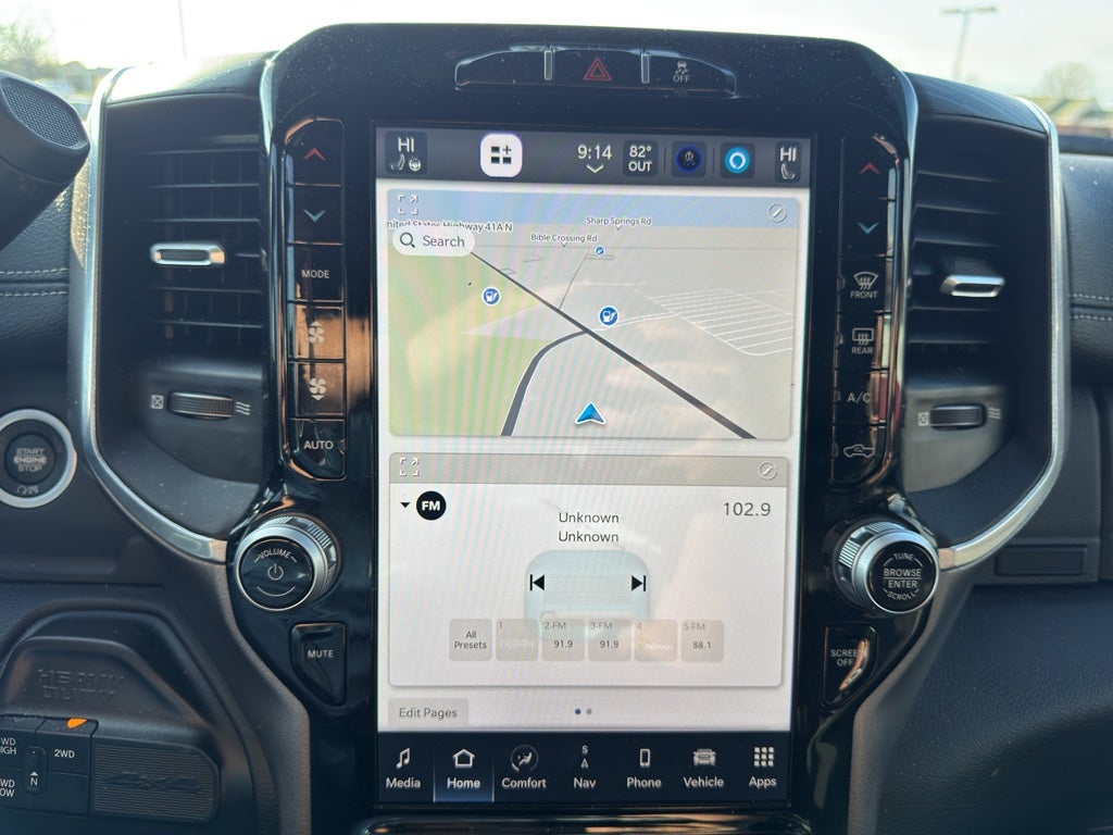 Quick Order Package 21H Laramie. Night Edition: LT285/60R20E OWL On/off Road Tires; Black Exterior Truck Badging; Black RAM Head Tailgate Badge; 20" X 8.0" Black Painted Aluminum Wheels; Gloss Black Grille Billets/accents; Body Color Grille Surround; Black Interior Accents; Black Headlamp Bezels; Sport Performance Hood; Black Wheel Center Hub; Black Tail Lamp Bezels; ParkSense Front/rear Park Assist System. Bed Utility Group: MOPAR Spray in Bedliner; MOPAR Deployable Bed Step; LED Bed Lighting. Laramie Level B Equipment Group: Google Android Auto; Rear Window Defroster; Blind Spot and Cross Path Detection; Rain Sensitive Windshield Wipers; LED Tail Lamps; Power Adjustable Pedals with Memory; Rear Power Sliding Window; Integrated Voice Command with Bluetooth®; Connectivity - US/Canada; 12" Touchscreen Display; Auto Power-Folding Mirrors; GPS Navigation; GPS Antenna Input; Exterior Mirrors with Heating Element; Auto Dimming Exterior Mirrors; SiriusXM with 360L; Connected Travel and Traffic Services; Front LED Fog Lamps; Heated Second Row Seats; LED Reflector Headlamps; Mirror Running Lights; Foam Bottle Insert (door Trim Panel); Alexa Built-In; Apple CarPlay; Power-Adjustable Convex Aux Mirrors; Off-Road Information Pages; Forward and Reverse Utility Lights; Selectable Tire Fill Alert; Trailer Tow Pages; Disassociated Touchscreen Display; HD Radio; Uconnect 5 Navigation with 12.0" Display Radio; Power Heat Fold Memory Telescopic Mirrors; Exterior Mirrors with Supplemental Signals; Exterior Mirrors Courtesy Lamps; Remote Tailgate Release; 17 Speaker Harman/kardon Premium Sound; Auto High Beam Headlamp Control; Chrome Exterior Mirrors; Center Hub; Exterior Mirrors with Memory; Power Adjust Mirrors; 2nd Row in Floor Storage Bins; Power Telescoping Mirrors; Auto Dimming Exterior Passenger Mirror; Auto Adjust in Reverse Exterior Mirrors; ParkSense Front/rear Park Assist System. Protection Group: Transfer Case Skid Plate Shield. Power Sunroof. MOPAR Spray in Bedliner. Blind Spot and Cross Path Detection. Leather Trimmed Bucket Seats. 5th Wheel/gooseneck Towing Prep Group. Center Stop Lamp with Cargo View Camera. Billet Silver Metallic CC. Cluster 12" TFT Color Display. Instrument Panel Mounted Auxiliary Switches. MOPAR Front and Rear Rubber Floor Mats. Clearance Lamps. **Equipment listed is based on original vehicle build and subject to change. Please confirm the accuracy of the included equipment by calling the dealer prior to purchase.**